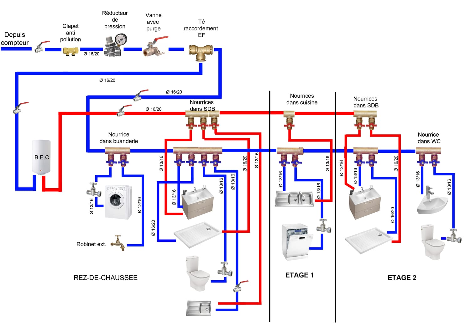 Installation complète de réseau d’eau chaude et froide